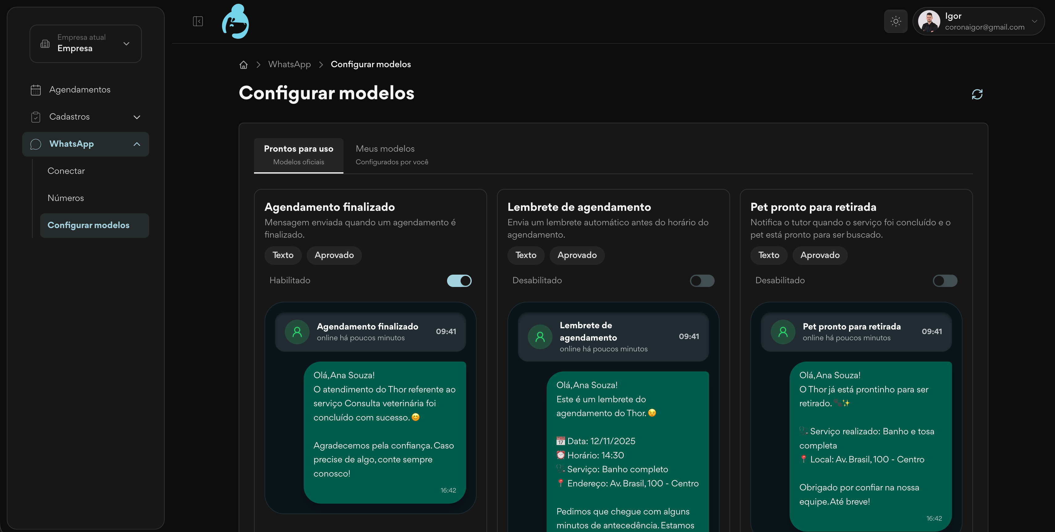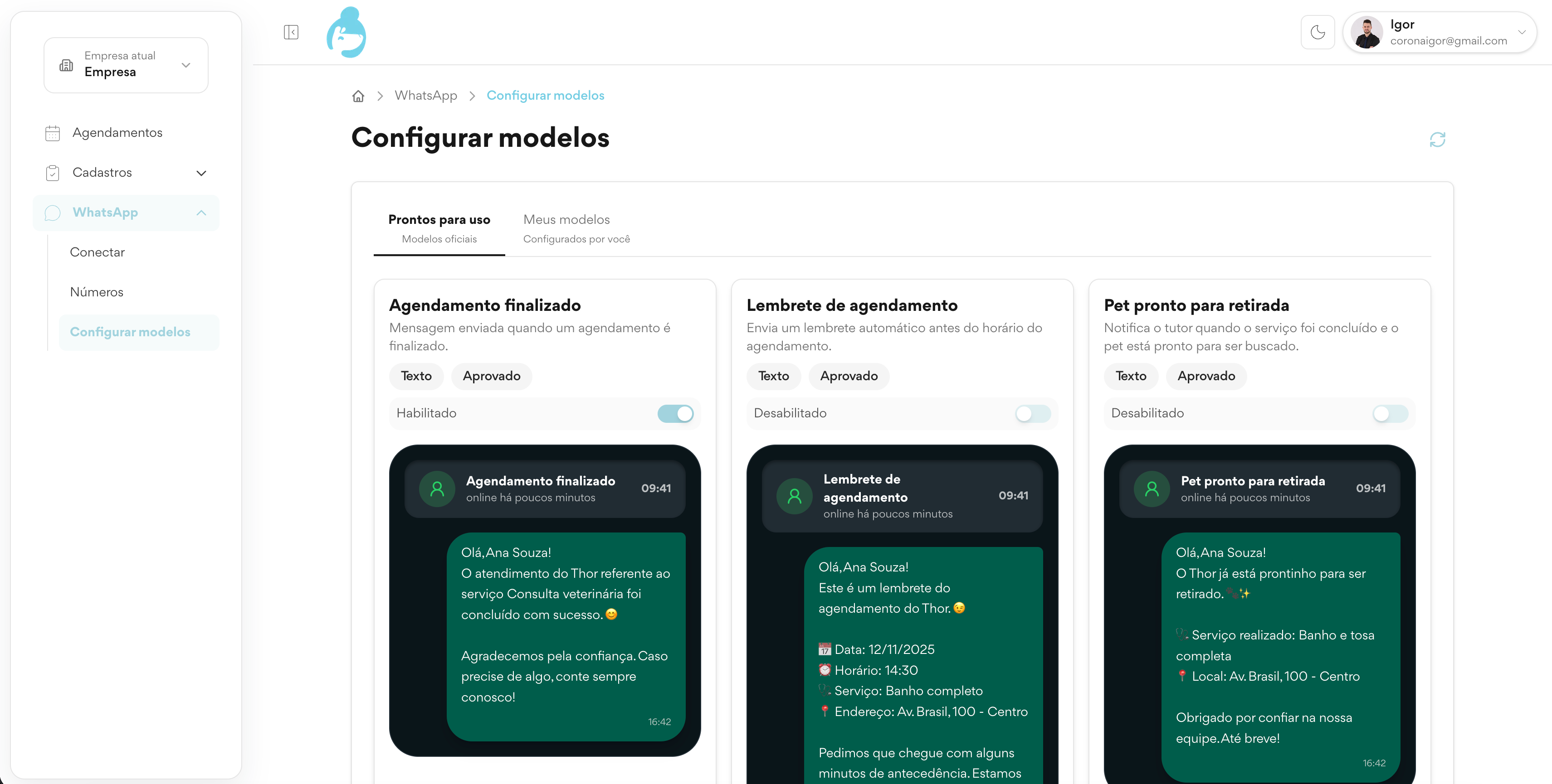 WhatsApp oficial da Meta integrado